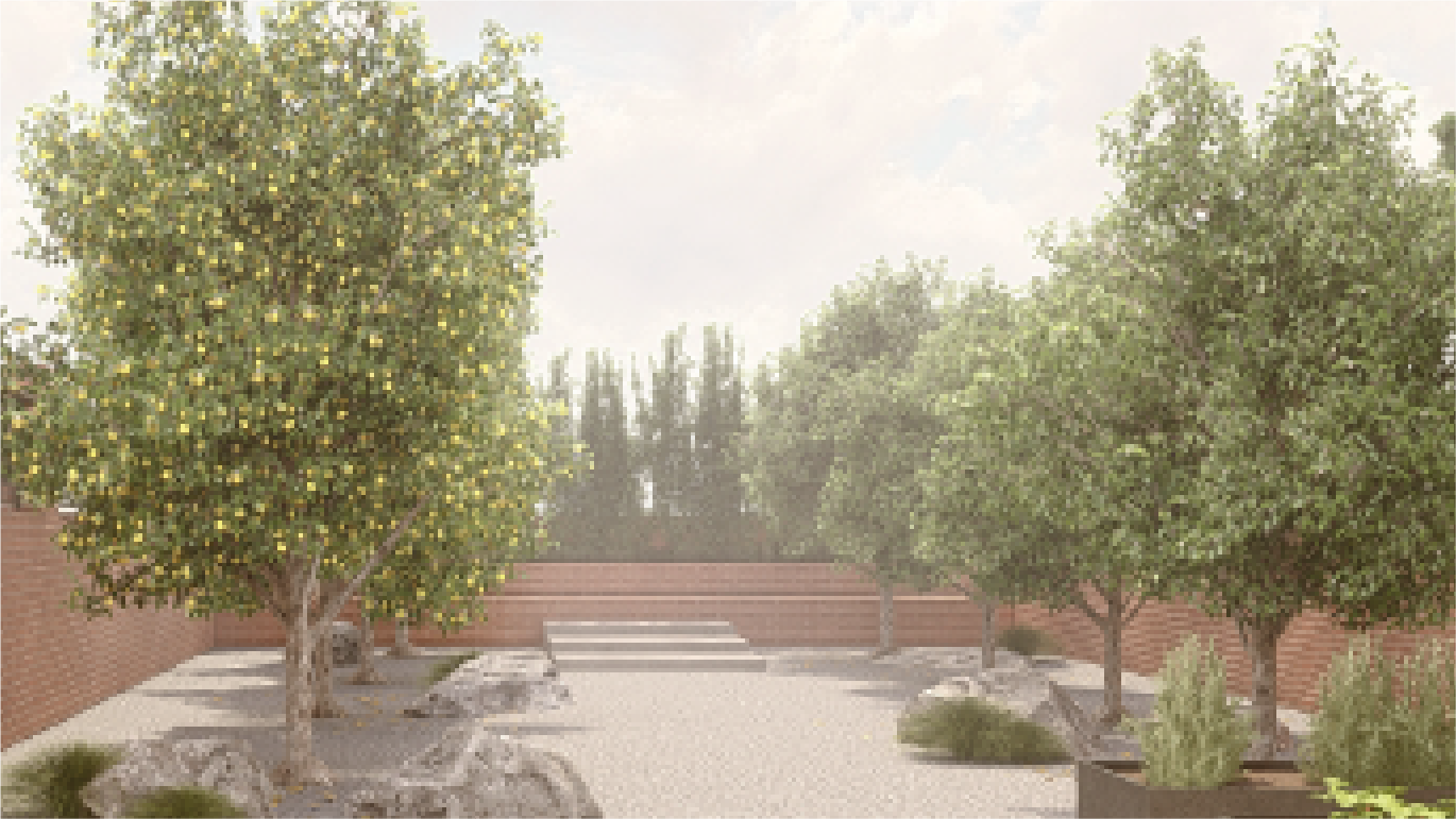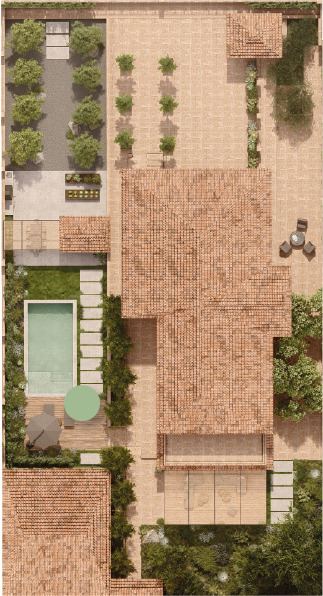 Proponemos una comunidad botánica que aporte escala, estructure espacios, enmarque visuales y refuerce la privacidad del jardín.